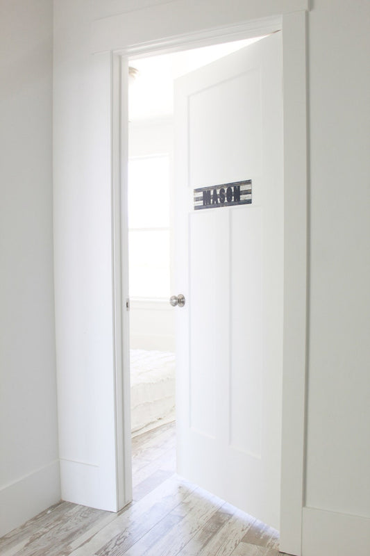 Customizable Kids Name Sign | Rustic Faux Wood Blue Stripe