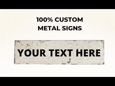 Custom signs are perfect for customized phrase you are looking for. These custom metal signs are perfect to hang, prop or display in any event or space. This sign features a cream background with chippy brown edging.